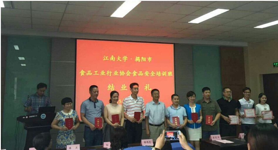 6月21日 -28日,在揭陽市食品藥品監(jiān)督管理局的指導(dǎo)和協(xié)助下,揭陽市食品工業(yè)行業(yè)協(xié)會組織了上海、江蘇無錫江南大學(xué)為期7天的學(xué)習(xí)交流培訓(xùn)班。參加培訓(xùn)班的人員有:市食品工業(yè)行業(yè)協(xié)會成員、市藍(lán)城區(qū)管委會、市商務(wù)局、市科技局和市食品藥品監(jiān)管局約60人。我司技術(shù)研發(fā)中心趙淑昂、羅丹虹代表公司參加本次培訓(xùn)活動。