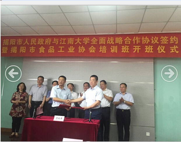 本次學(xué)習(xí)交流培訓(xùn)得到市委市政府的高度重視,在開班儀式上,揭陽市副市長曾瑞如致辭并作開班動員講話,江南大學(xué)食品學(xué)院陳衛(wèi)院長與揭陽市藍(lán)城區(qū)管委會、揭陽市產(chǎn)業(yè)轉(zhuǎn)移工業(yè)園主任蔡淡群簽約全面戰(zhàn)略合作協(xié)議和成立國家級食品研究中心協(xié)議。揭陽市食品藥品監(jiān)督管理局局長黃偉忠對揭陽市食品工業(yè)情況作了全面的介紹。